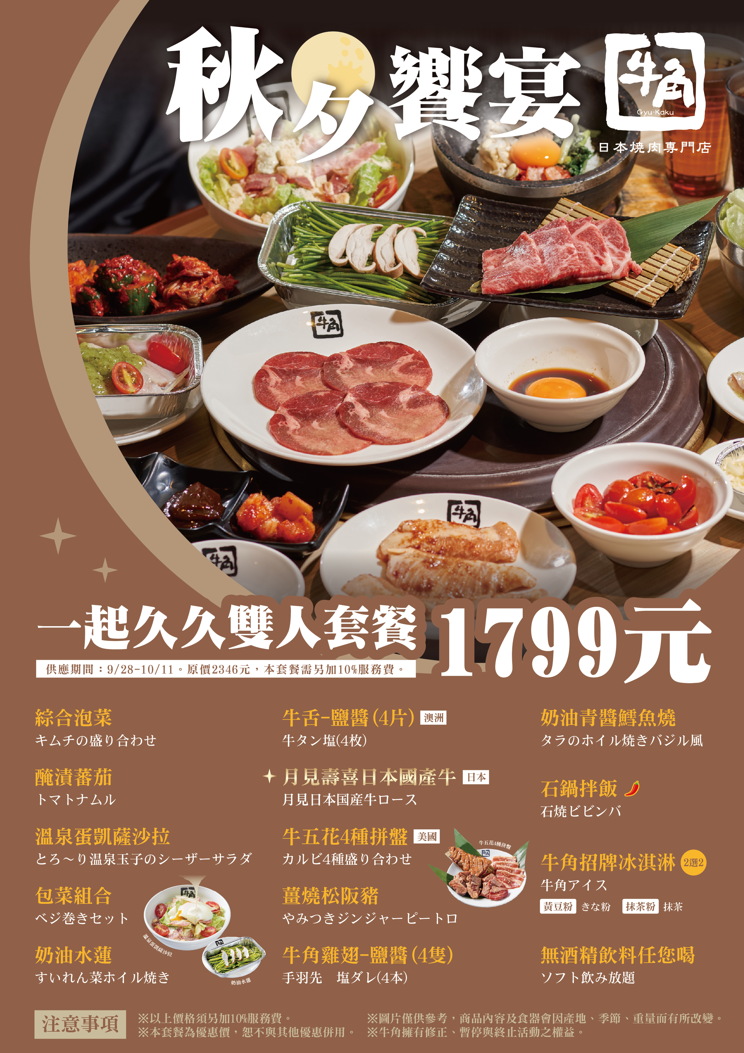 ★10/3(六)-10/4(日)提供單點、秋季饗宴套餐、『牛角方案』899任您吃★