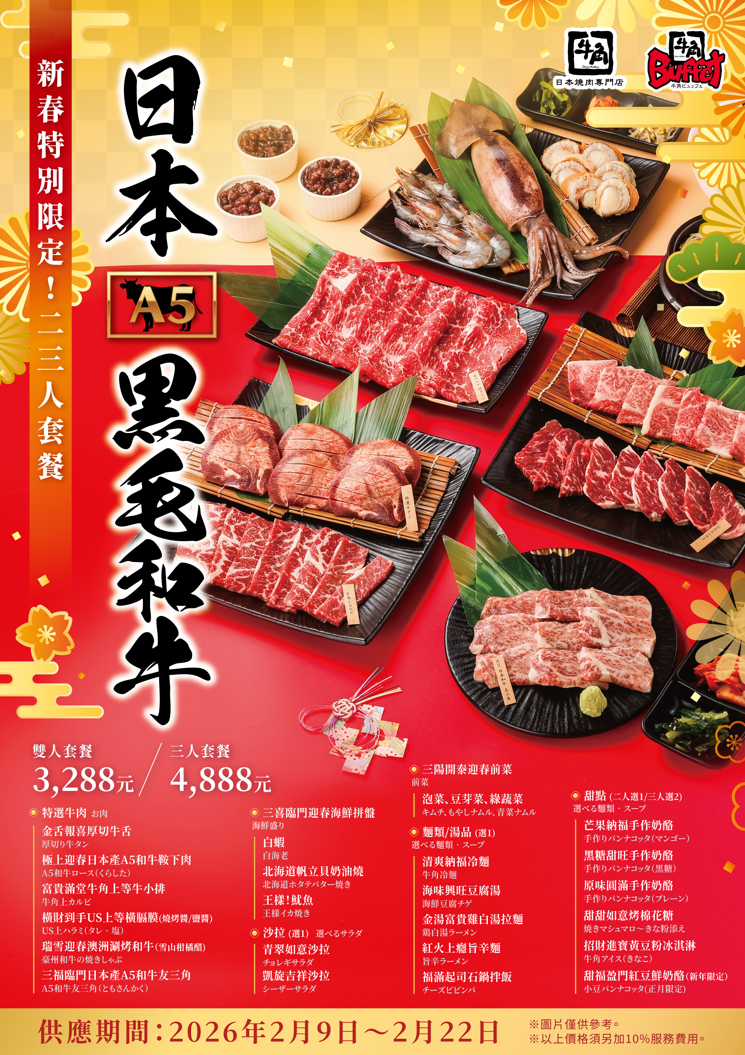 新春特別套餐 限定開吃|日本A5黑毛和牛 2–3人套餐